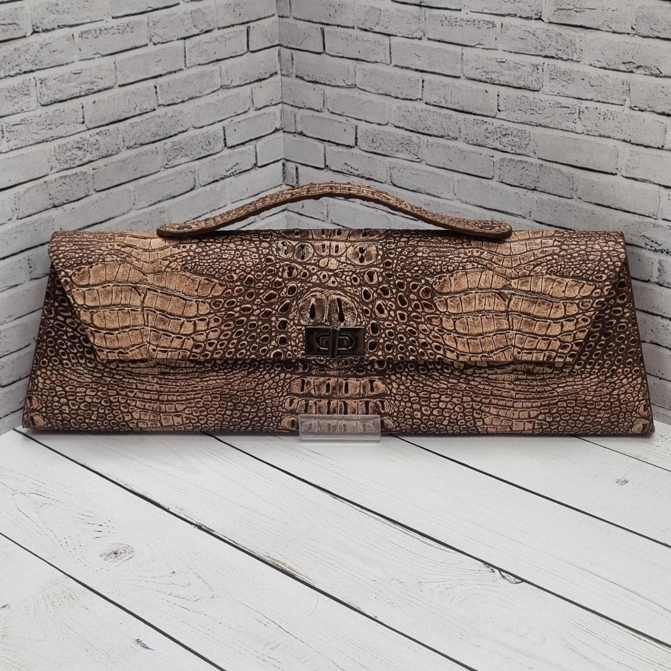 Клатч тиснение "Кайман" с цепочкой черный никель темно-коричневый Размер 390х120х30 мм