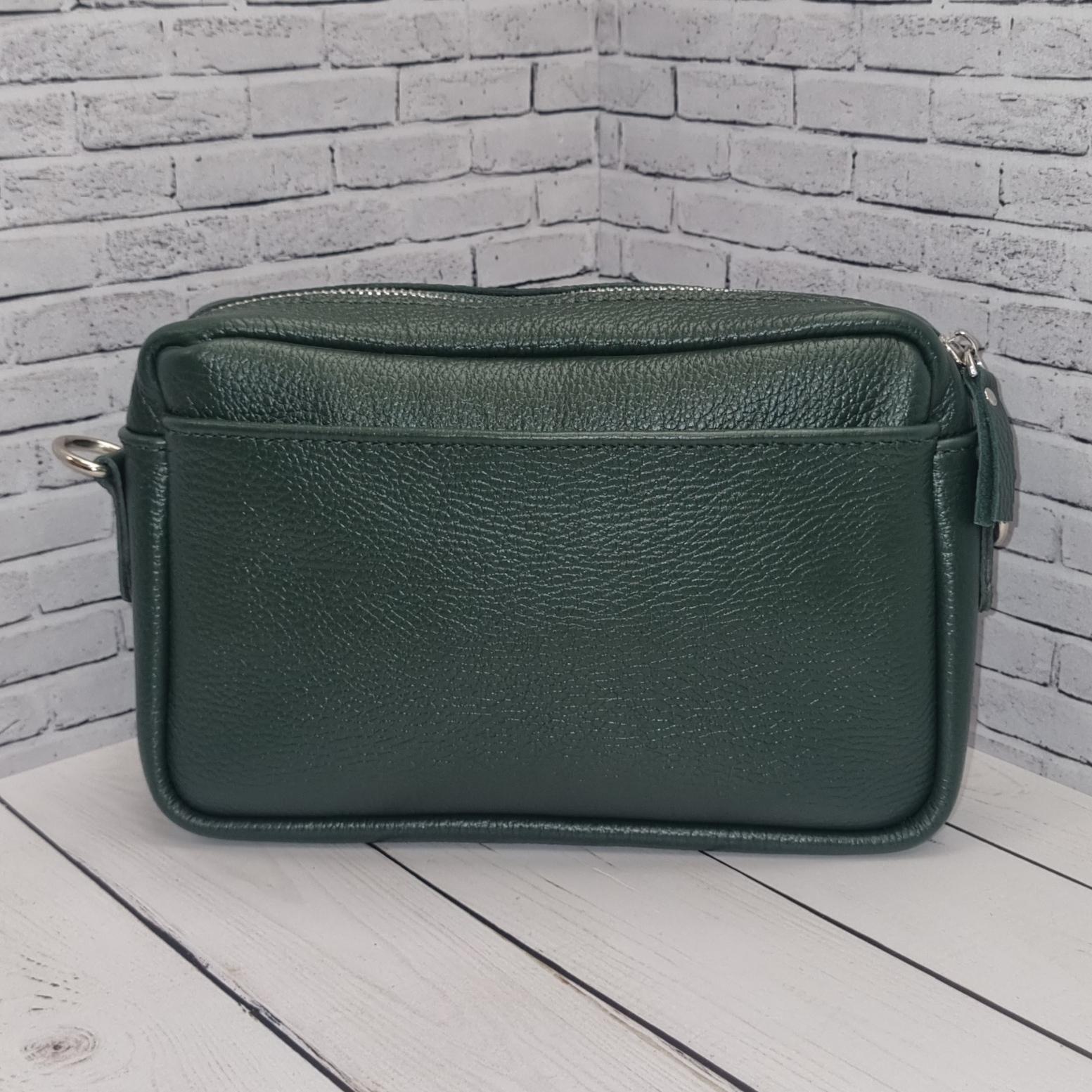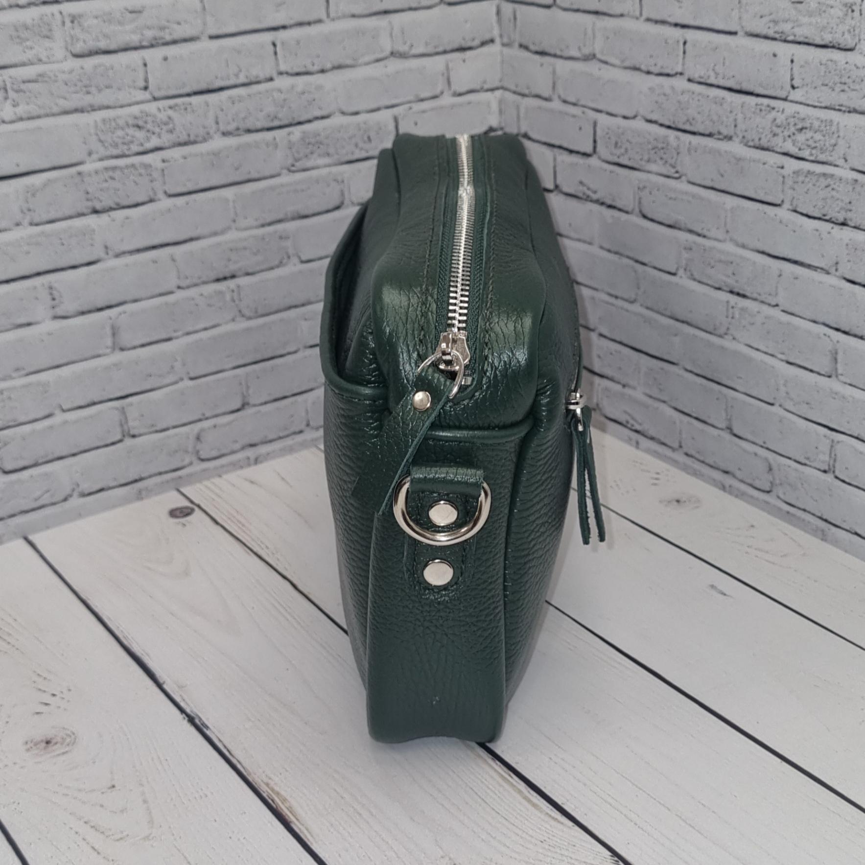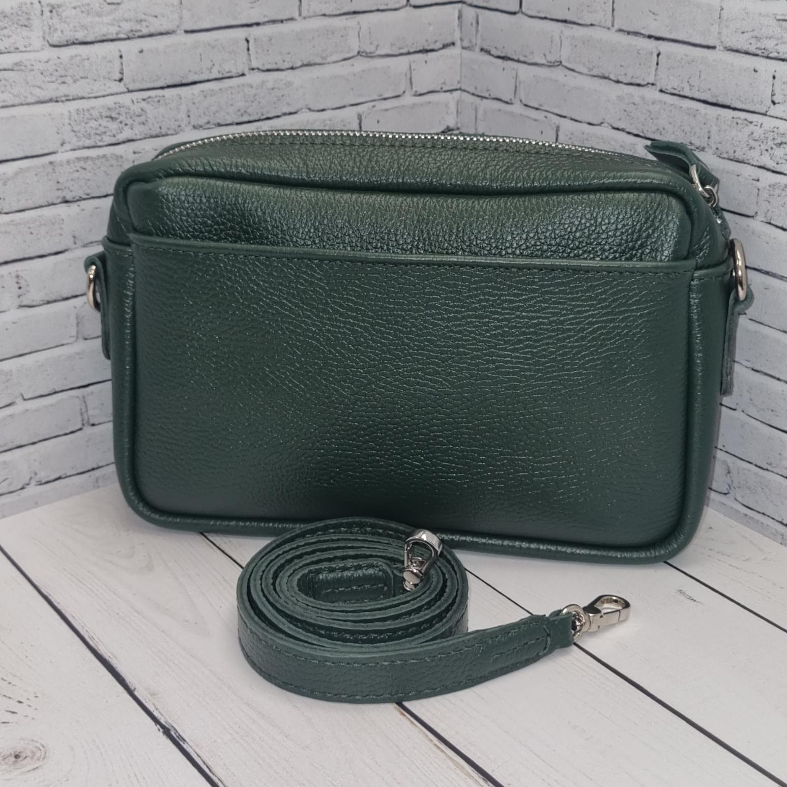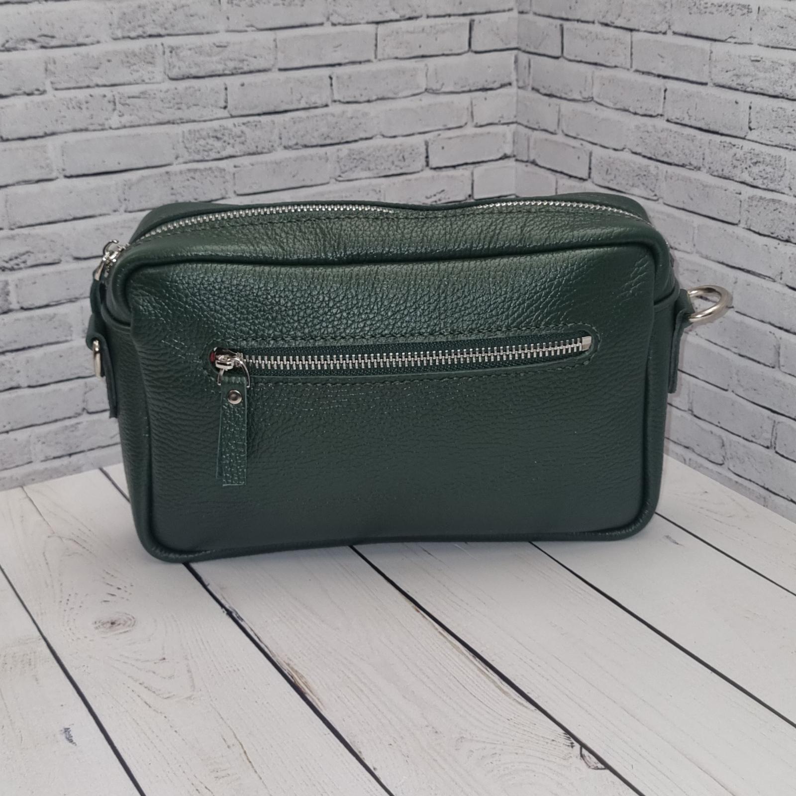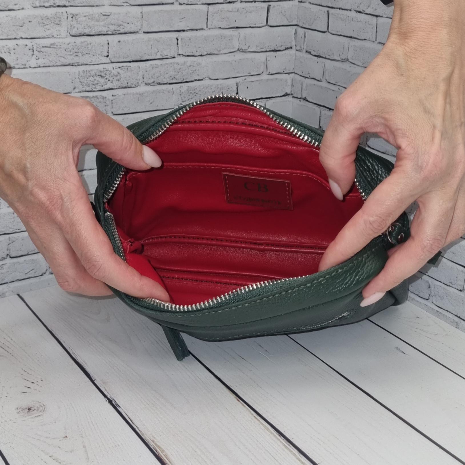 Сумка через плечо кросс боди, темно-зеленая и красная. Фурнитура хром Темно-зеленая натуральная кожа КРС Подклад Овчина цвет красный Размер 230х160х40мм