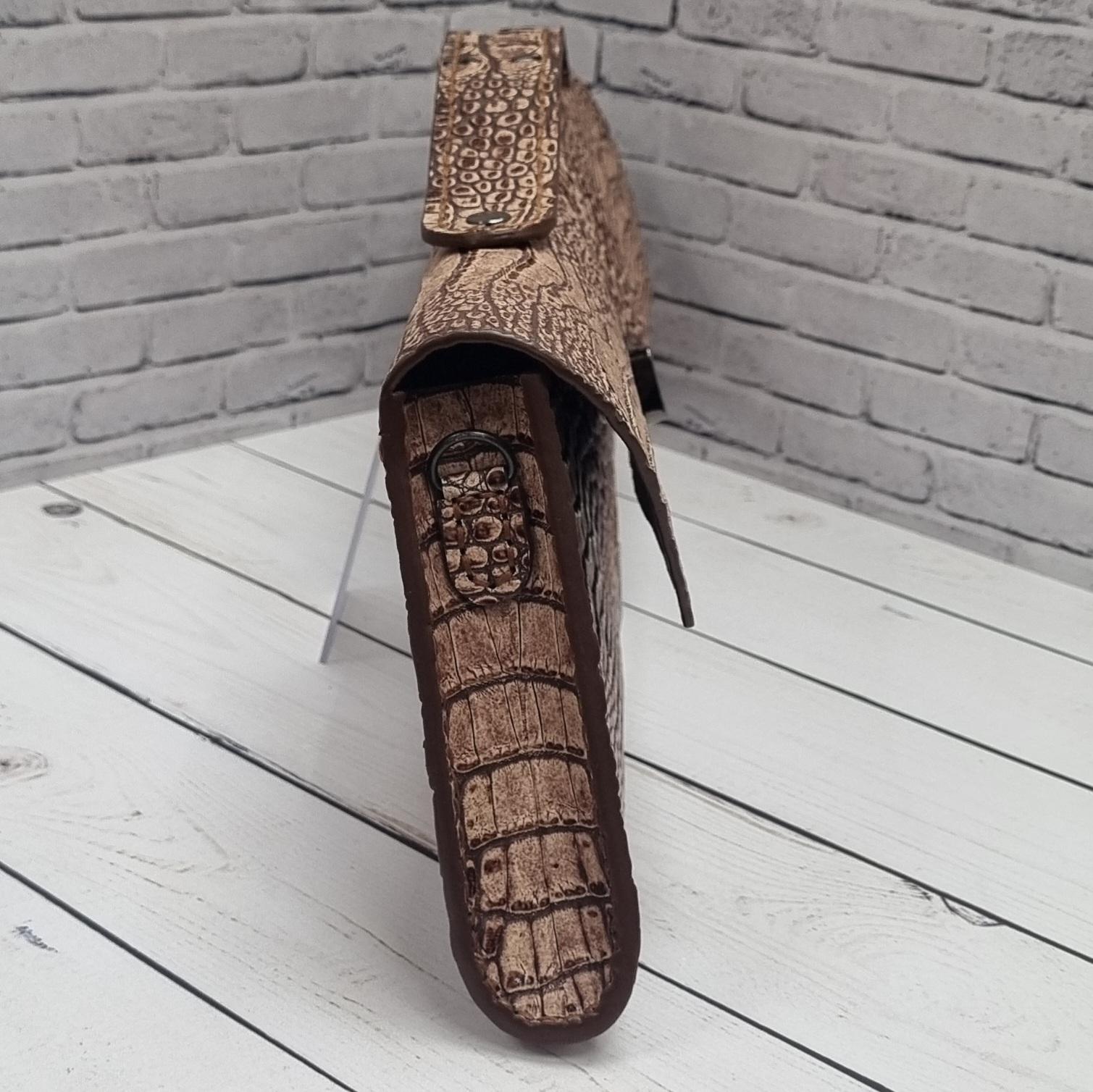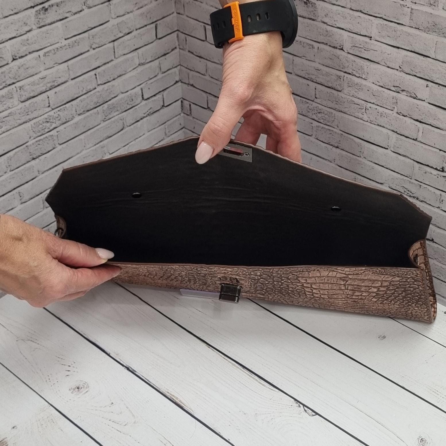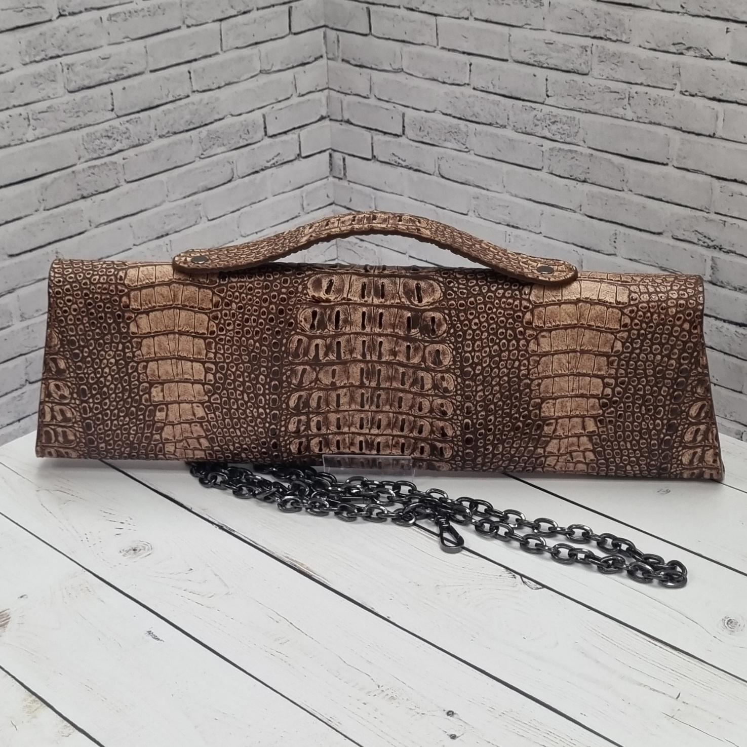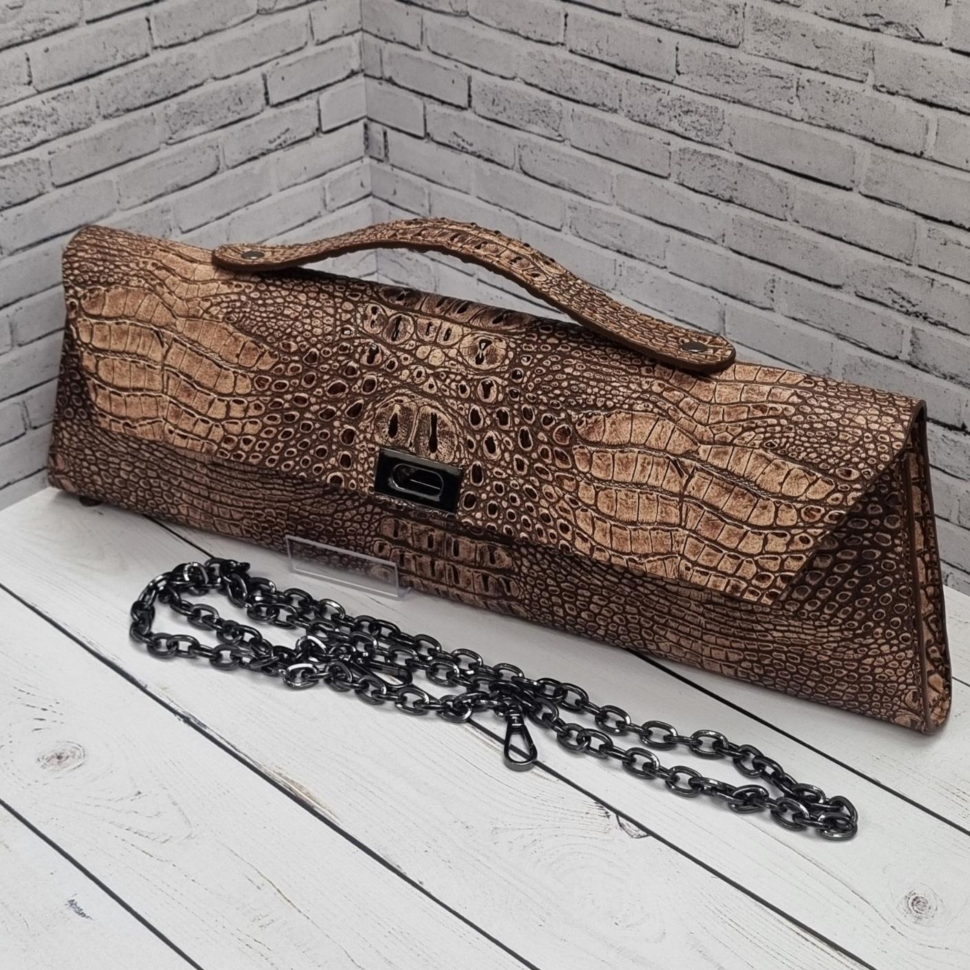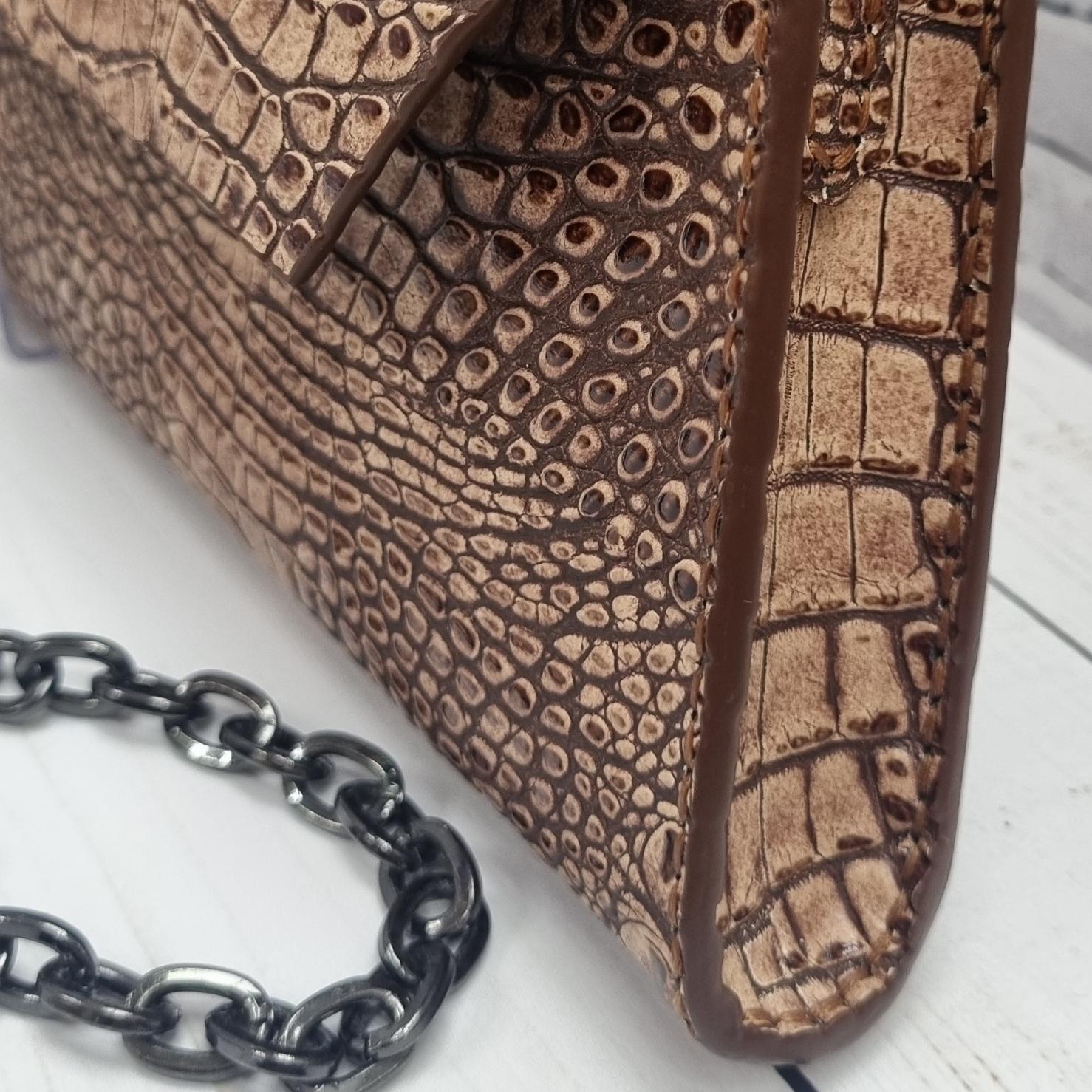 Клатч тиснение "Кайман" с цепочкой черный никель темно-коричневый Размер 390х120х30 мм