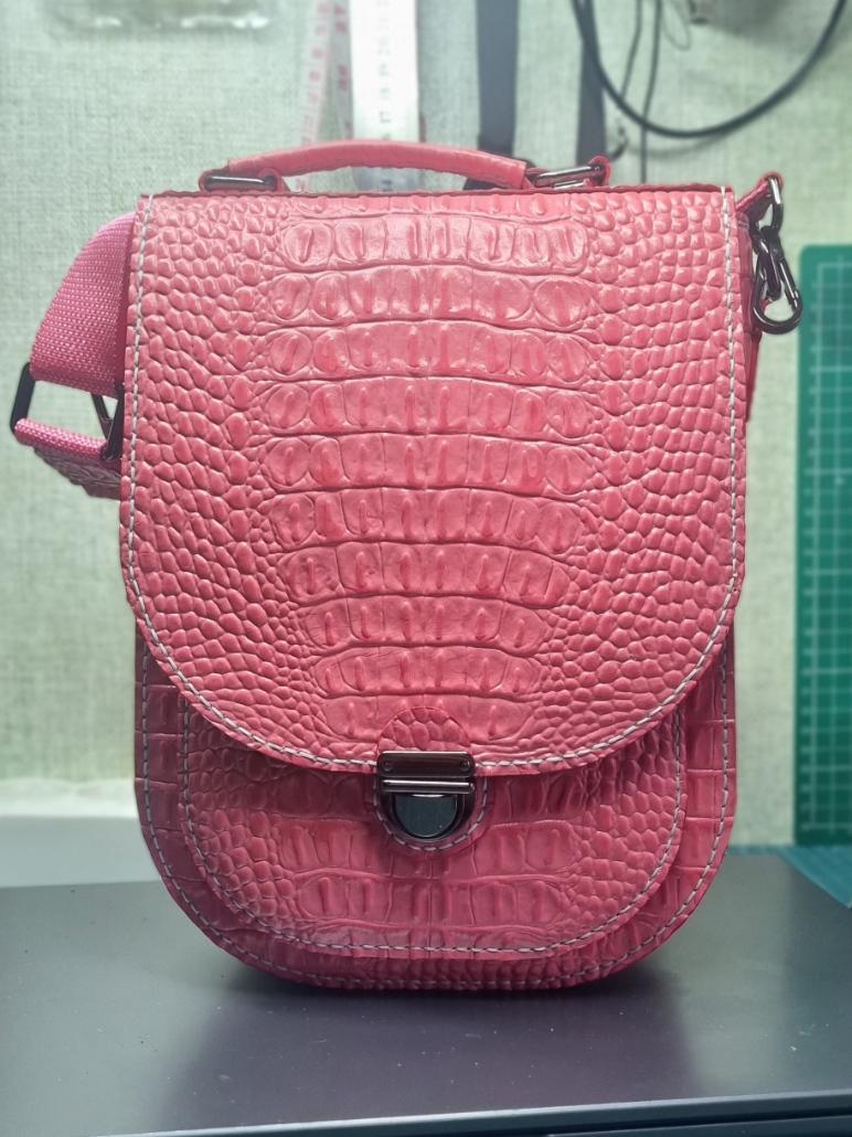 Сумка планшет, лосось, тиснение кайман,Натуральная кожа Размеры 200х250х70мм